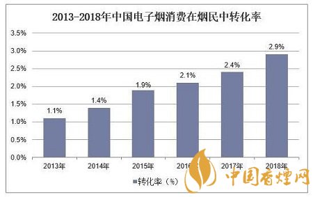 據(jù)統(tǒng)計,2018年中國電子煙消費在煙民中轉化率(新型煙草消費者占煙民比例)約為2.9%。