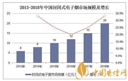 據(jù)統(tǒng)計,2018年中國封閉式電子煙市場規(guī)模約20億元,同比增長33.3%。