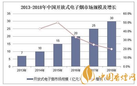 據(jù)統(tǒng)計,2018年中國開放式電子煙市場規(guī)模為30億元,同比增長20%。