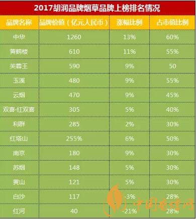 以上就是香煙網(wǎng)小編為大家整理介紹的關(guān)于13家煙草企業(yè)登2017胡潤(rùn)品牌排行榜情況,希望大家看完煙草品牌總價(jià)值4861億(中華第一)之后繼續(xù)支持國(guó)產(chǎn)!
