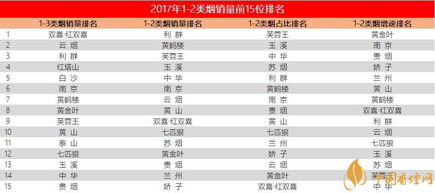 前面為大家介紹過2017雙15煙草品牌市場(chǎng)綜述 理性回顧2017卷煙銷售成績(jī)單。還原到市場(chǎng)上,就是二類煙正在并仍將不斷地基座化、大眾化和普及化。如果如果用一二類煙來排名雙15品牌會(huì)是個(gè)社呢么情況呢?小編人為無疑更具參考性和說服力,大家覺得呢?下面香煙網(wǎng)小編為大家整理介紹。