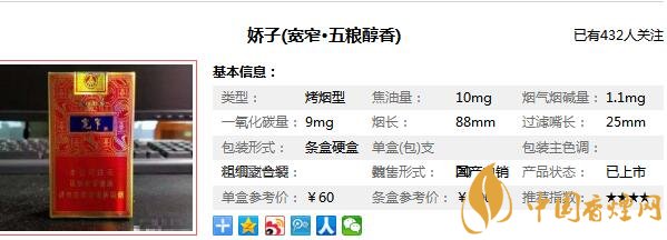 嬌子香煙是四川中煙的代表品牌,而嬌子的寬窄系列,是嬌子香煙中最為火熱的產(chǎn)品,受到許多煙友們的好評(píng),許多人慕名而來只為尋得,寬窄香煙,那么寬窄五糧醇香多少一包,現(xiàn)在就由香煙網(wǎng)小編為大家介紹寬窄五糧醇香香煙價(jià)格圖片。