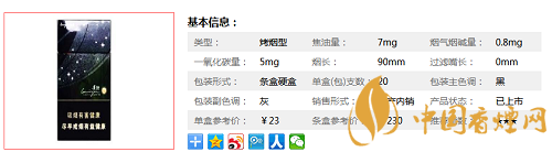 | 類(lèi)型 :烤煙型 | 焦油量 :7mg | 煙氣煙堿量 :0.8mg | 一氧化碳量 :5mg |