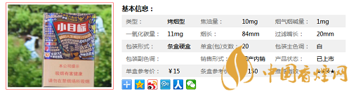 | 類(lèi)型 :烤煙型 | 焦油量 :10mg | 煙氣煙堿量 :1mg | 一氧化碳量 :11mg |