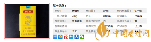 | 類(lèi)型 :烤煙型 | 焦油量 :8mg | 煙氣煙堿量 :0.7mg | 一氧化碳量 :7mg |