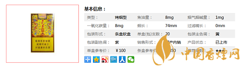 | 煙長(zhǎng):74mm | 過(guò)濾嘴長(zhǎng):25mm | 包裝形式:條盒軟盒 | 單盒(包)支數(shù):20 |