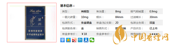 | 類型 :烤煙型 | 焦油量 :8mg | 煙氣煙堿量 :0.9mg | 一氧化碳量 :10mg |