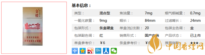 金橋硬官方價格表 國產(chǎn)混合煙中的佼佼者!