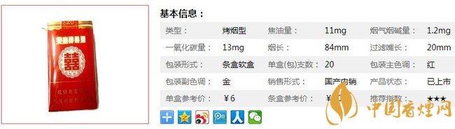 這款軟皮的紅雙喜有點大前門的香味,算是廣東知名度最高的一款煙。味道特別正,勁道適中,香氣不錯,味道還可以,價格平民??谖督o贊,值得推薦的一款低價好煙。經(jīng)香煙網(wǎng)小編市場調(diào)查雙喜軟售價為6元/包。