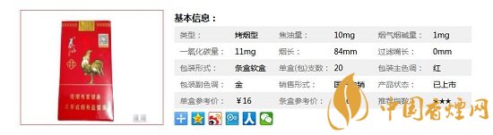 | 類(lèi)型 :烤煙型 | 焦油量 :10mg | 煙氣煙堿量 :1mg | 一氧化碳量 :11mg |
