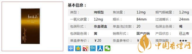 | 類(lèi)型 :烤煙型 | 焦油量 :12mg | 煙氣煙堿量 :1.2mg | 一氧化碳量 :12mg |