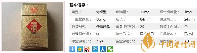玉溪金黃硬煙支長84mm,過濾嘴長24mm,該產(chǎn)品為特制高級過濾嘴卷煙,精選自然醇化的玉溪地區(qū)上等煙葉為原料,配制專用香精,經(jīng)過嚴格的科學配方和嚴格工藝加工而成。從制絲、卷接到包裝,均采用先進的進口現(xiàn)代生產(chǎn)設備,從而使整個生產(chǎn)過程有嚴格的質量控制和檢測保證。下面我們一起來看玉溪金黃硬的參數(shù)信息:焦油量:11mg. 煙堿量:1mg. 一氧化碳量:10mg.
