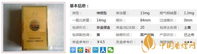 | 類型 :烤煙型 | 焦油量 :13mg | 煙氣煙堿量 :1.3mg | 一氧化碳量 :14mg |