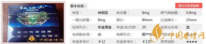 | 類(lèi)型 :烤煙型 | 焦油量 :8mg | 煙氣煙堿量 :0.8mg | 一氧化碳量 :8mg |
