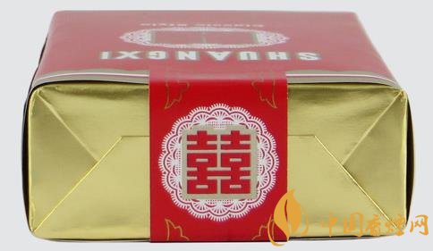 正面剪紙圖花潔白,“喜喜”則浮貼其上,嵌以金邊,喜氣洋洋。上為中文商標“雙喜牌香煙”,下有“經(jīng)典雙喜”字樣,金線之下為大警語。煙支入眼,樸素清秀,豎紋煙紙上印有紅色“喜喜”,金葉兩側(cè)環(huán)繞,下有“01”字樣。濾嘴稍短,下鑲金圈,整體感覺有種典雅之秀氣。