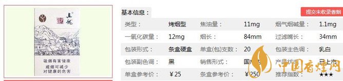 | 煙長:84mm | 過濾嘴長:34mm | 包裝形式:條盒硬盒 | 單盒(包)支數:20 |