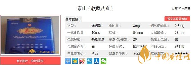 以上便是由香煙網(wǎng)小編為大家介紹的關于 泰山軟藍八喜價格和參數(shù) 泰山軟藍八喜口感分析的相關信息,想要了解更多有關內容請點擊:雙喜國喜軟藍口感測評 清爽醇雅甜潤怡然