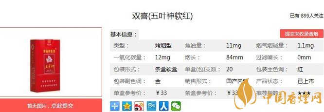 以上便是由香煙網(wǎng)小編為大家介紹的關于雙喜五葉神軟紅價格及參數(shù) 中式卷煙的代表分析的相關信息,想要了解更多有關內(nèi)容請點擊:雙喜鴻喜價格表一覽 雙喜鴻喜定位于喜慶商務用煙