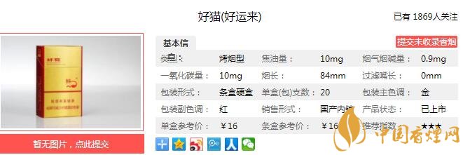 應(yīng)用新型保潤(rùn)技術(shù)有效降低了煙氣的干燥感和刺激性,煙氣醇和溫潤(rùn),余味干凈舒適,口感甜潤(rùn)柔和,給消費(fèi)者帶來(lái)“天然、輕松、舒適”的吸食體驗(yàn)。經(jīng)香煙網(wǎng)小編市場(chǎng)調(diào)查好貓好運(yùn)來(lái)售價(jià)為16元/包。