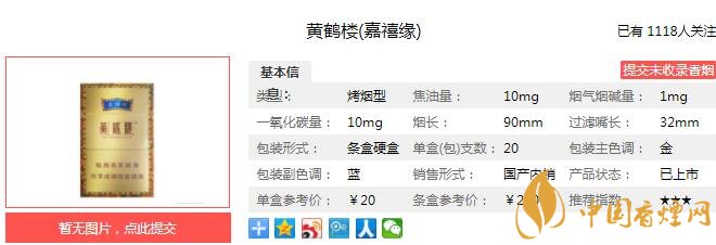 以環(huán)神農(nóng)架地區(qū)優(yōu)質(zhì)原生態(tài)煙葉輔以天然香精香料,以現(xiàn)代工藝增香體質(zhì),讓煙氣醇和舒暢,香味優(yōu)雅細(xì)膩,入喉細(xì)膩醇和,回味綿長。經(jīng)香煙網(wǎng)小編市場調(diào)查黃鶴樓嘉禧緣售價(jià)為20元/包。