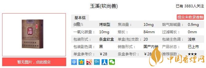 尚善玉溪秉承玉溪家族醇厚清香的經(jīng)典本味,精選云煙之鄉(xiāng)優(yōu)質(zhì)煙葉,煙葉配伍豐富而協(xié)調(diào),呈現(xiàn)溫潤醇香的細膩口感,軟包硬化的獨特包裝,完美保護每支尚善玉溪的卓越享受。經(jīng)香煙網(wǎng)小編市場調(diào)查玉溪軟尚善售價為28元/包。