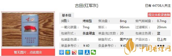 以上便是由香煙網(wǎng)小編為大家介紹的關(guān)于古田紅軍灰多少錢(qián)一包 古田紅軍灰口感如何的相關(guān)信息,想要了解更多有關(guān)內(nèi)容請(qǐng)點(diǎn)擊:泰山秀系列香煙有幾種 六款泰山秀系列香煙價(jià)格介紹