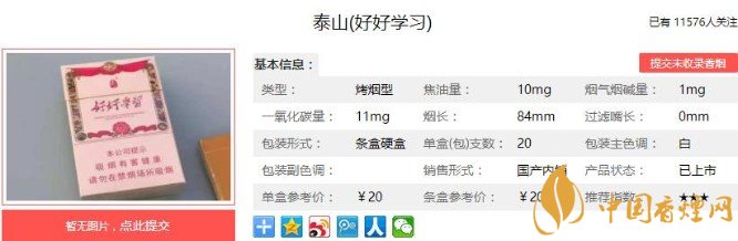泰山好好學習充分利用香精香料在卷煙中增香、保潤的雙重作用,采用傳統(tǒng)漿果類香料及進口蜂蜜提高舒適性和甜潤感,不僅僅味道好,關鍵抽著也很舒適,在20元左右的香煙里面。這款香煙是沒有什么問題可以挑出來的。下面就跟著香煙網(wǎng)小編一起來了解這款香煙的具體詳情吧~~