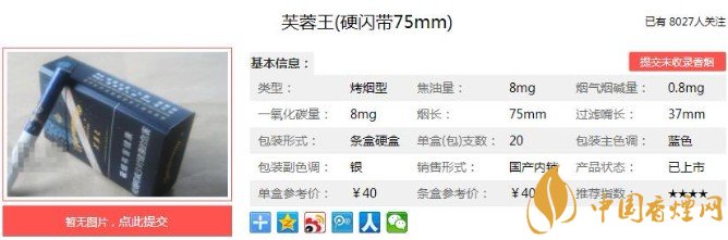 芙蓉王(硬閃帶75mm)是芙蓉王系列第一款短支卷煙,也是芙蓉王第一款小盒八角包裝產(chǎn)品。精悍短小的身材,給煙民朋友留下了深刻的影響,畢竟在煙草市場(chǎng)當(dāng)中,這樣尺寸的香煙,還是不多的。但也正是這樣,以及價(jià)格因素導(dǎo)致買過(guò)此款香煙朋友的回頭的幾率并不是很大。下面跟著香煙網(wǎng)小編一起來(lái)了解芙蓉王(硬閃帶75mm)的相關(guān)信息吧。