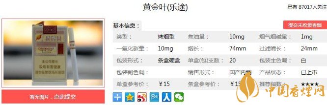 以上便是香煙網(wǎng)小編為大家介紹的關(guān)于黃金葉價(jià)格及口感分析,包裝是最閃亮的點(diǎn)!的相關(guān)信息,看完之后大家是不是對(duì)于黃金葉(樂(lè)途)的相關(guān)信息更加了解呢。大家還想查詢更多的相關(guān)內(nèi)容歡迎點(diǎn)擊:黃金葉小黃金好抽嗎 黃金葉小黃金價(jià)格及參數(shù)介紹