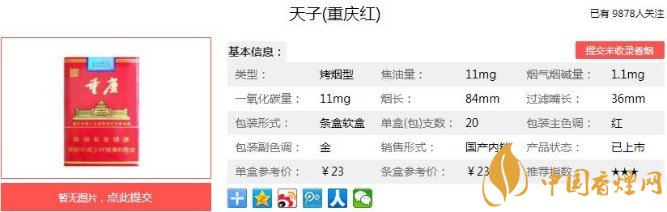以上便是香煙網(wǎng)小編為大家介紹的關(guān)于地道重慶味的香煙,天子(重慶紅)價(jià)格在23元一包!的相關(guān)信息,看完之后大家是不是對于天子(重慶紅)的相關(guān)信息更加了解呢。大家還想查詢更多的相關(guān)內(nèi)容歡迎點(diǎn)擊:天子千里江山細(xì)支爆珠味道怎么樣 千里江山口感分析
