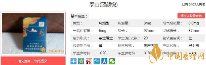 以上便是香煙網(wǎng)小編為大家介紹的關(guān)于泰山藍(lán)顏悅多少錢(qián) 泰山藍(lán)顏悅價(jià)格及口感品吸的相關(guān)信息,看完之后大家是不是對(duì)于泰山(藍(lán)顏悅)這款香煙的相關(guān)信息更加了解呢。大家還想查詢更多的相關(guān)內(nèi)容歡迎點(diǎn)擊:泰山儒風(fēng)多少錢(qián) 泰山儒風(fēng)最新口感評(píng)測(cè)