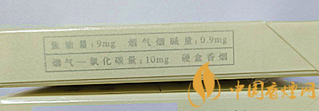 | 類型 :烤煙型 | 焦油量 :9mg | 煙氣煙堿量 :0.9mg | 一氧化碳量 :10mg |