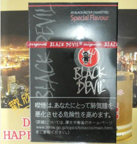 黑魔鬼香煙是火了很多年的日本煙,Heupink & Bloemen公司推出Black Devil品牌的第二種產(chǎn)品,甜巧克力,先在日本上市。由于日本厚生勞動省要求香煙外包裝必須標(biāo)注吸煙危害健康的字樣,所以我們在市面所見的黑魔和銀魔都有日本文字。