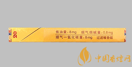 | 類型 :烤煙型 | 焦油量 :8mg | 煙氣煙堿量 :0.8mg | 一氧化碳量 :8mg |