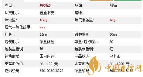 | 類型 :烤煙型 | 焦油量 :10mg | 煙氣煙堿量 :1mg | 一氧化碳量 :9mg |