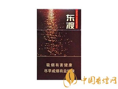 盒子正面翻蓋右側(cè)有金色豎排的“東渡”品名,過濾嘴香煙的英文filter cigarette列于其旁,主圖案除了品名外就是稍稍靠左的日暉圖案,像朝陽斜映在波光粼粼的水面,反射出點點金光,顯得非常有意境;