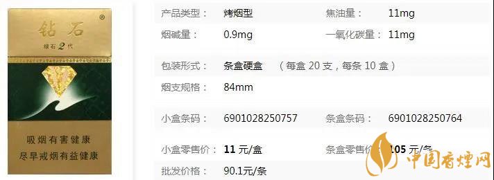 鉆石香煙歷經(jīng)不到二十載的發(fā)展,成為了中國(guó)知名的卷煙品牌之一,產(chǎn)品特色鮮明,品類(lèi)豐富,減害降焦方面也表現(xiàn)極佳。鉆石(綠石2代)大字版是升級(jí)版的綠鉆石香煙,它的焦含量適中,口感醇甜,深受廣大煙民的喜愛(ài)。據(jù)小編調(diào)查得知市場(chǎng)售價(jià)為10元/包。