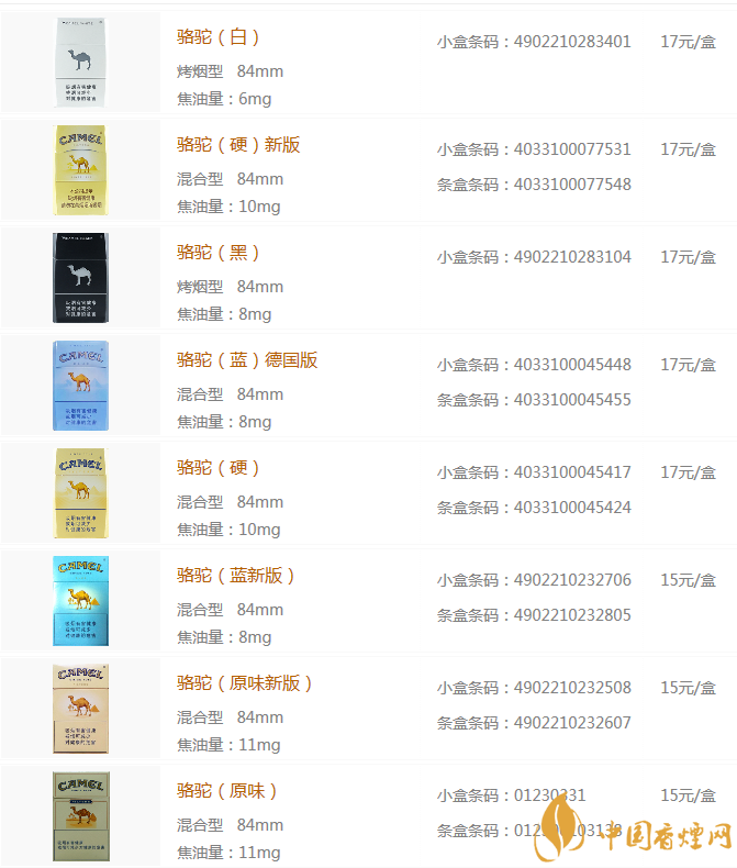 以上就是香煙網(wǎng)小編為大家介紹的camel駱駝香煙價格表圖 駱駝香煙價格排行榜的相關內容,希望為大家提供幫助。想了解更多香煙價格排行榜,歡迎關注香煙網(wǎng)。