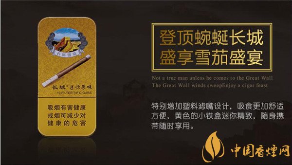 這款迷你長城雪茄煙,外觀迷你,特別增加了塑料濾嘴設計,便于吸食者吸食方便,黃色的迷你小鐵盒裝攜帶方便,外觀內在都很精致,口感也較為細膩醇香,性價比還比較高。拿出去時尚潮流又有面子,總的來說還是不錯的。想要了解更多關于長城雪茄煙怎么樣詳情點擊:長城雪茄煙(迷你原味)怎么樣