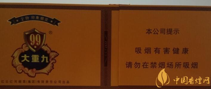細支煙風(fēng)頭正盛,大重九當(dāng)然也不能孤芳自賞,總得還是要有奴嬌伴其左右,細支大九采用硬盒包裝,無雜質(zhì)的金礦黃襯托盾牌花邊“大重九”。背面是麥穗包裹“99”,簡單大氣的包裝卻不失豪華端莊。我們在對云煙大重九細支價格表圖的介紹之前,先來說說云煙細支大重九多少錢這款香煙的零售參考價為100元。