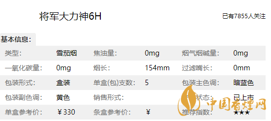 將軍戰(zhàn)神6h雪茄煙價格表及參數(shù)介紹2020