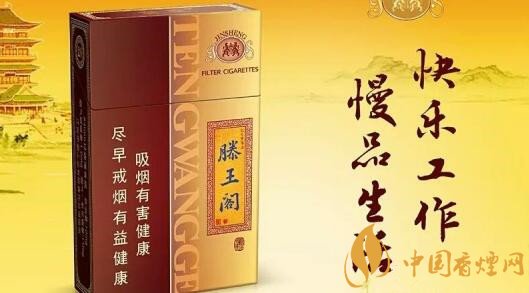 金圣滕王閣(漁舟唱晚),包裝非常漂亮,顯得高檔大氣,。右邊三分之一是棕褐色的,左邊三分之二淡黃色的,煙體正面左邊的中間用藍色字體赫然寫著滕王閣幾個大字,中間印著一座美麗的滕王閣樓,下面還有山水陪襯,整體包裝彰顯出其高檔大氣的特性。#p#副標題#e#