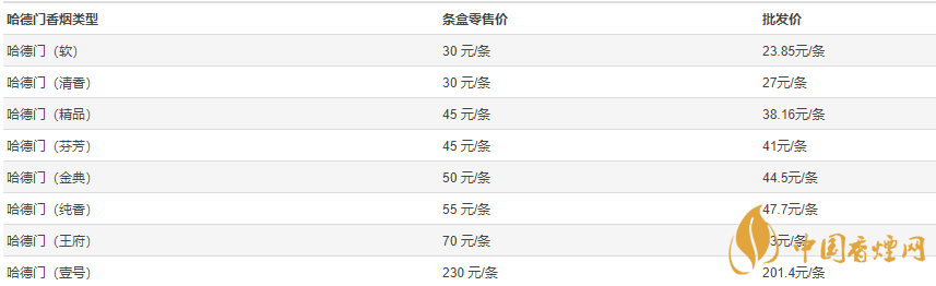 從哈德門批發(fā)價和零售價區(qū)別對比中,我們可以清晰地看出哈德門的批發(fā)價明顯是要低于條盒零售價。其中哈德門(壹號)是哈德門系列中批發(fā)和零售價差最大的一款,價差達(dá)到28.6元,這價差比哈德門(清香)的批發(fā)價都要多出1.6元。