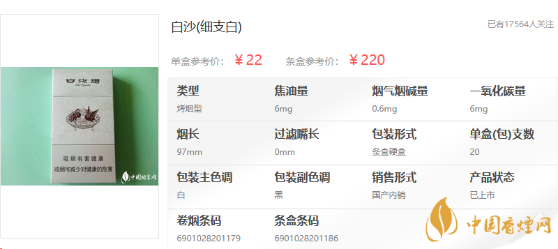 以上就是小編收集到的白沙細(xì)支香煙價格表圖一覽,白沙細(xì)支香煙價格合集的相關(guān)內(nèi)容,以上數(shù)據(jù)均來源于網(wǎng)絡(luò),僅供參考,小編溫馨提示,為了您和家人的健康,請您盡量少吸煙,更多相關(guān)信息請關(guān)注香煙網(wǎng)。