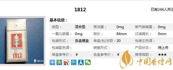 以上內(nèi)容是由香煙網(wǎng)小編為大家收集以及整理的關(guān)于,1812煙多少錢一包相關(guān)信息,想要了解更多信息詳情請點(diǎn)擊:銷量最好外煙品牌。
