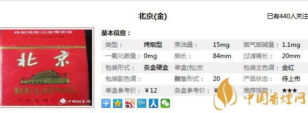 北京卷煙廠始建于1970年,位于朝陽區(qū)管莊西里42號,是一個占地面積十一萬二千平方米、建筑面積九萬余平方米,工藝布局合理、管理科學(xué)、技術(shù)設(shè)備先進、自動化水平較高的中國中型卷煙工業(yè)企業(yè),在對北京喜慶香煙價格表分析之前,先來看看北京喜慶煙多少錢一包,北京喜慶香煙也就是現(xiàn)在北京(金),它的售價為12元/包。