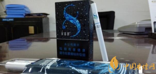 這款香煙正面外觀來看給人的第一印象它就是一款涼煙,炫酷純黑的底色搭配晶亮水滴為主色調(diào),同時冰藍(lán)顏色的抽象冰塊圖案形成了一個數(shù)字“8”形狀,讓人覺得涼爽的同時也突出了產(chǎn)品LOGO。