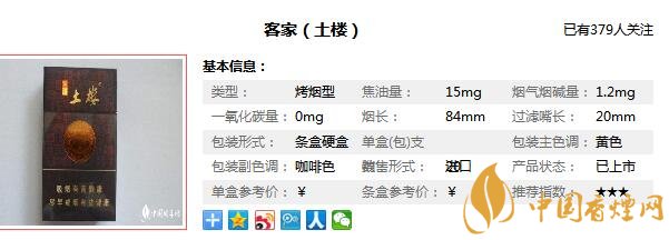 這是一款客家族的香煙,是傳承福建土樓文化的香煙品牌。由永定縣政府和福建中煙公司聯(lián)合開發(fā),傳承福建土樓,弘揚(yáng)客家永定條絲煙文化,是一款別具風(fēng)味的香煙,那么在了解客家樓香煙價(jià)格表之前,先來看看這款客家樓香煙多少錢一包,這款香煙的售價(jià)為40元/包。