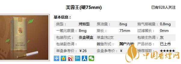 芙蓉王香煙于1994年誕生,參與中國高檔卷煙市場(chǎng)競(jìng)爭(zhēng),意在搶奪20元檔以上這一當(dāng)時(shí)的價(jià)位市場(chǎng)空白點(diǎn),然而芙蓉王香煙做的非常成功,它的風(fēng)格深受廣大卷煙消費(fèi)者喜愛,更因其內(nèi)在品質(zhì)被譽(yù)為“中式卷煙的典范代表”。在對(duì)新出短支黃芙蓉王售價(jià)進(jìn)行分析之前,先來看看這款芙蓉王短支多少錢一包,這款香煙叫做芙蓉王(硬75mm)售價(jià)為26元/包。