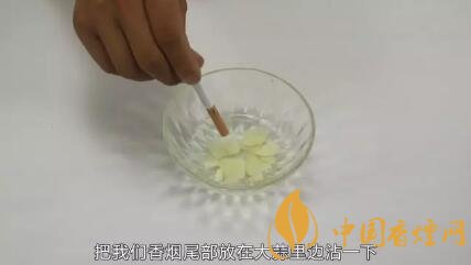 第二個小妙招也很簡單,只需要準備一個容器,然后用到家中常用的大蒜,把大蒜切成蒜片裝在容器里,然后倒入一點清水一起攪拌均勻,讓大蒜的溶液滲入到水中,待溶液靜置15分鐘,靜置15分鐘之后想抽煙時,拿著香煙把香煙尾部放在大蒜里邊沾一下,因為香煙的尾部它會吸入一些大蒜汁,大蒜汁有辛辣味,我們在抽煙的情況下這樣沾上然后點燃香煙,讓我們抽上兩口之后就感覺煙是沒有味道的,而且有惡心嘔吐的感覺。